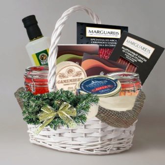 Collecting a similar grocery set, be sure to consider not only the taste preferences of the birthday man, but also his state of health. For example, if a man has a disease such as diabetes, he cannot use sweets.