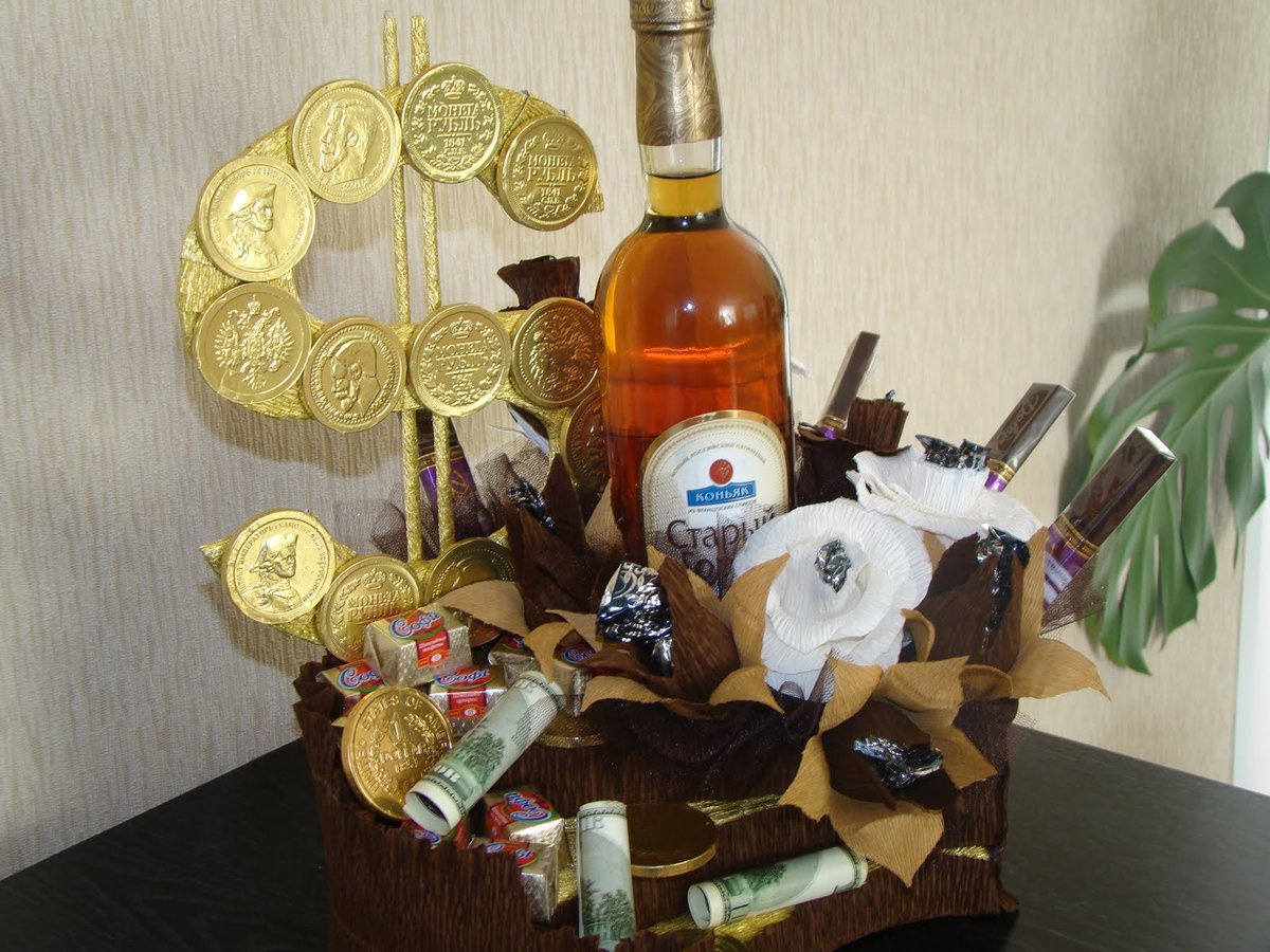 Do it yourself with your own hands to make a tasty wall newspaper or a large size postcard. Such a surprise usually contains various sweets, small items of clothing, drinks in small packages and much more.