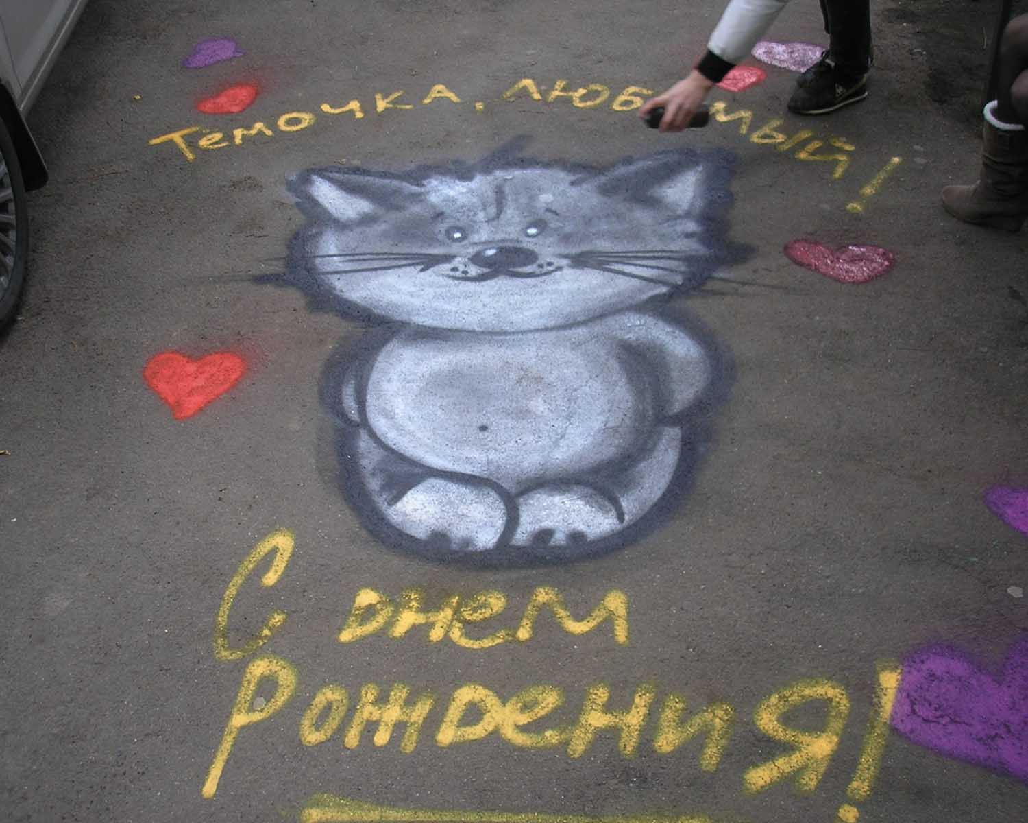 A drawing of paint or chalk on the asphalt under the birthday boy’s windows can be a very romantic gesture, as well as a song with a guitar if it’s about a girl. But it is worth being careful, because not all neighbors are able to appreciate such a gesture.