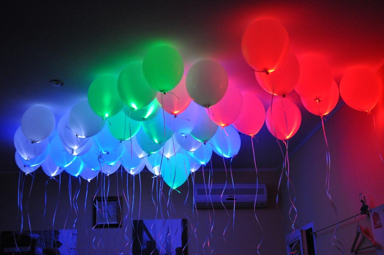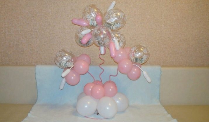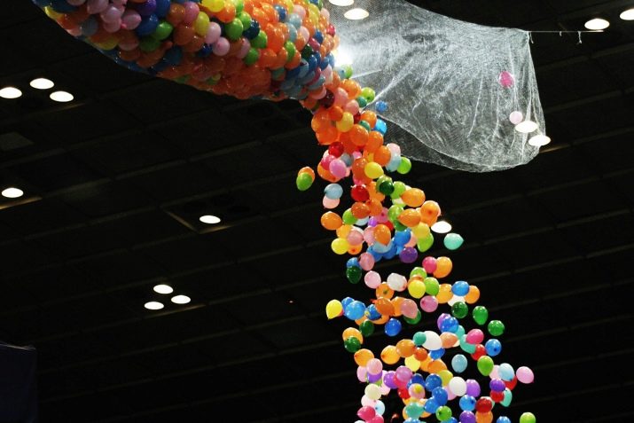 For example, you can fill the transparent balloons with various shiny pieces of paper and special gas, thanks to which they will not only hang, but tend to the ceiling. Filled balls can be fixed on the floor or allow them to freely sit under the ceiling. In the second case, it is worth avoiding contact with lighting devices, since in case of strong overheating the balls may simply burst.