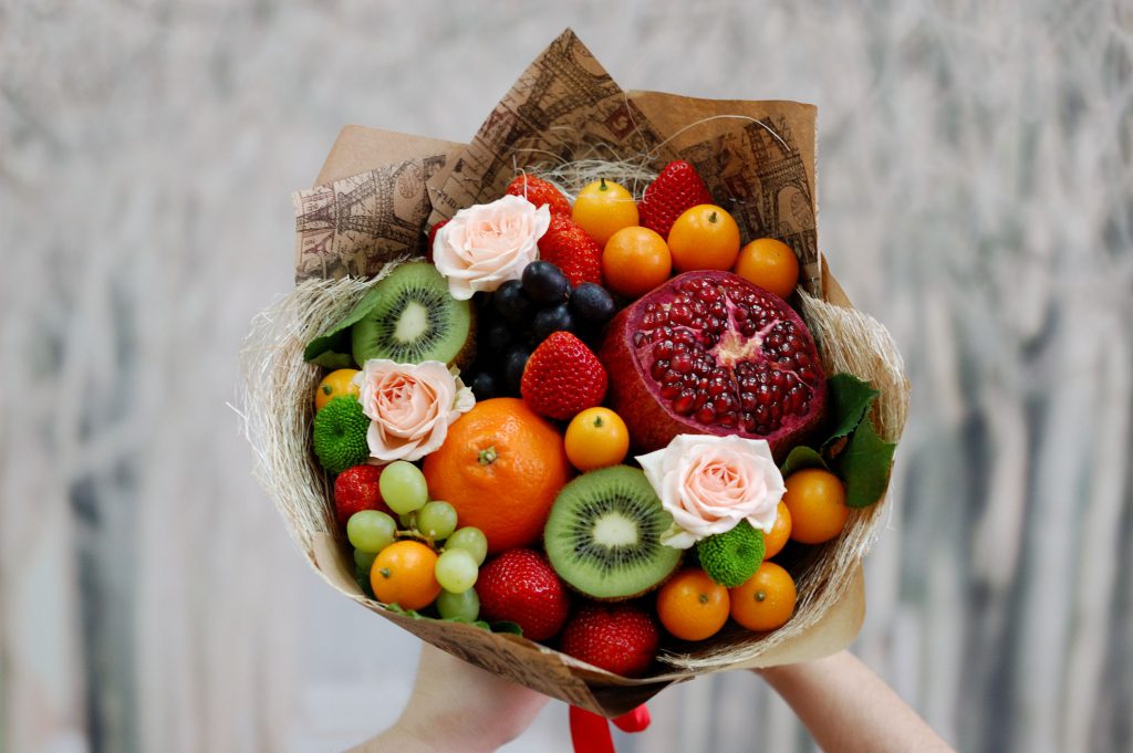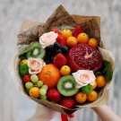 - Fruit and vegetable bouquets. These wonderful products are gaining popularity every day. Fruket - a bouquet of fruit that makes the master with the wishes of the client. Someone will not like fruit, and then you can order a bouquet of vegetables. Red peppers mixed with garlic and laurel leaves look very original.