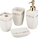 - A set for the bathroom. New beautiful rug, container for liquid soap, stand for toothbrushes - the perfect useful gift. Choose neutral shades that suit any bathroom interior.