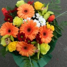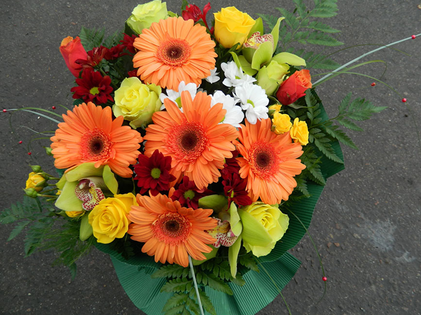 - Flowers. The choice of colors today is really impressive. Florists in flower shops will help you to collect a very inexpensive, but very beautiful bouquet. Even one rose in a beautiful wrapper will be a nice addition to the greeting.