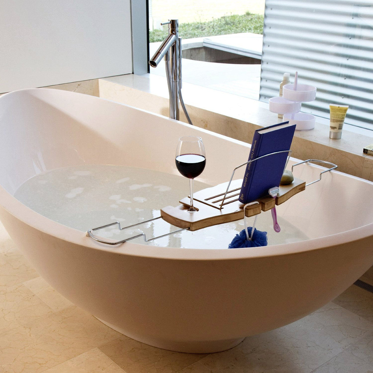 You can put a book on it without fear of getting wet, install a tablet in order to watch your favorite movie, or place care products. This stand has removable holders - for example, under a filled glass of drink.
