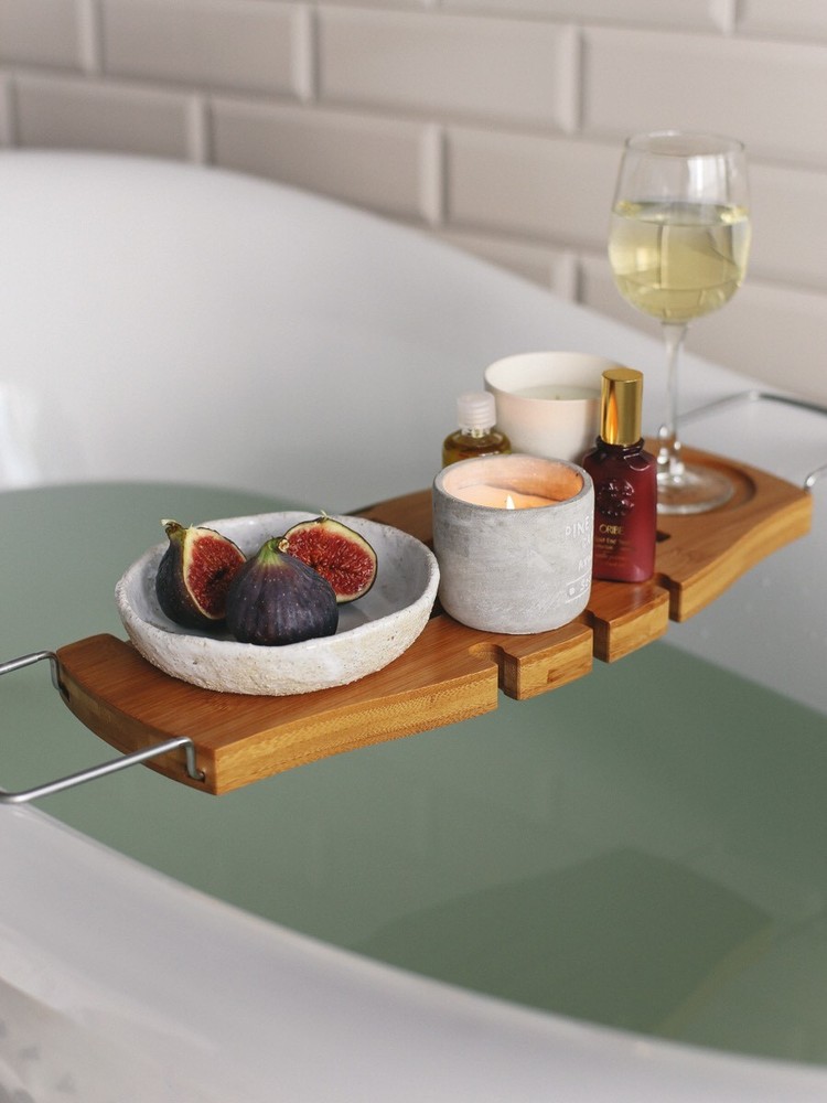 - Stand for the bath. If a woman likes to bask in the foam for a long time surrounded by candles flickering with lights, then she will simply need a gift of this kind. This is a special stand with a chrome surface.