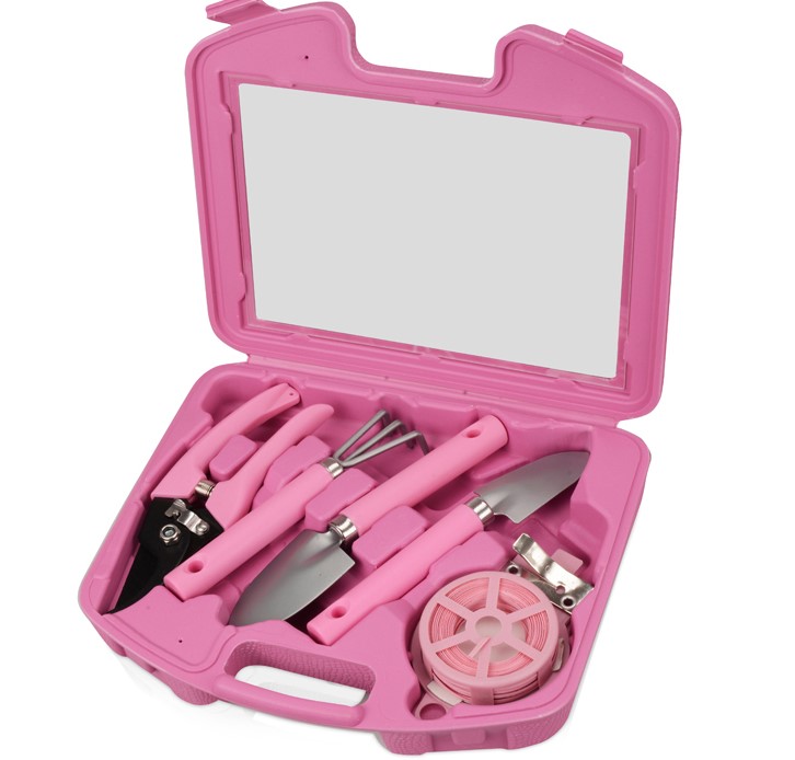 - Garden kit. If a woman spends much of her free time in a garden or vegetable garden, then a set of garden tools can be a very useful gift for her. They can be conveniently stowed in a pink suitcase - it is impossible to immediately determine that there is the usual equipment for working in a garden or a vegetable garden.