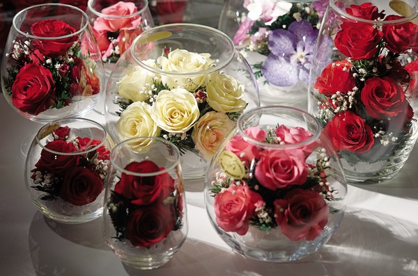 - Flowers in a vacuum. Women at any age love flowers. But as a creative gift it is better to present not an ordinary bouquet, but flowers in a vacuum. This kind of unusual composition of different colors, placed in a hemisphere of glass, is not very expensive, but it looks impressive.