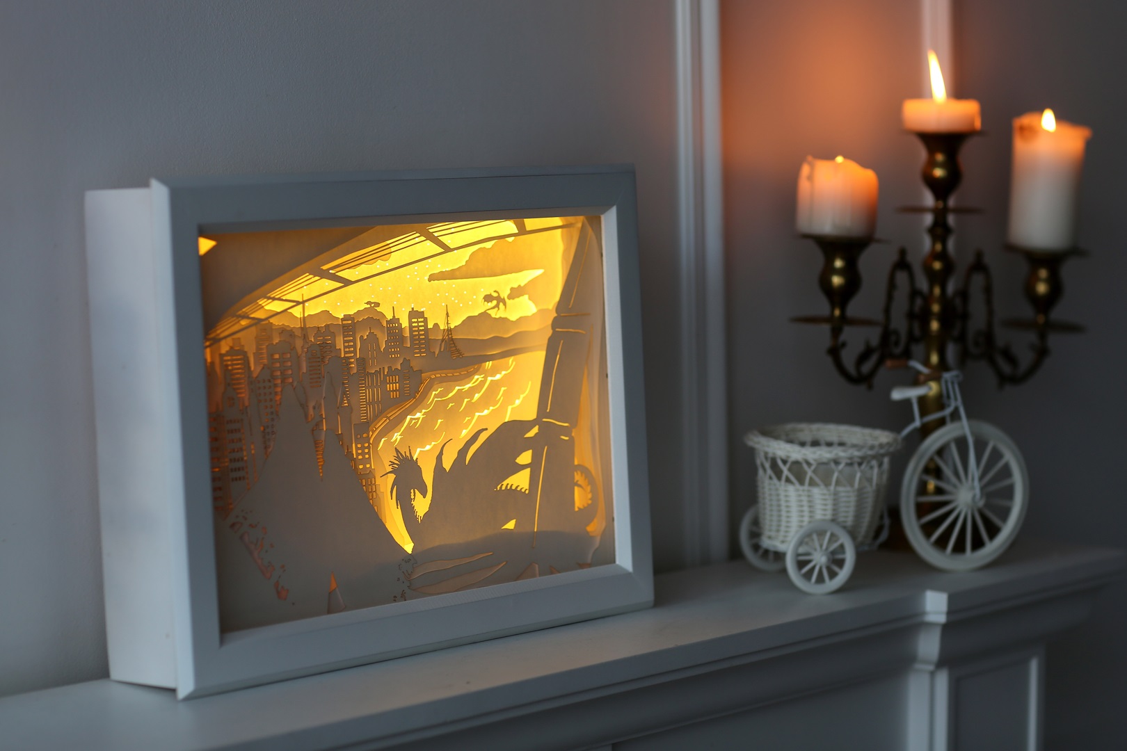 You can choose the most interesting pictures with a view of animals or landscapes, flowers or silhouettes of people. The glowing diorama will perfectly fit into any modern interior, adding to it mysteriousness and luxury.