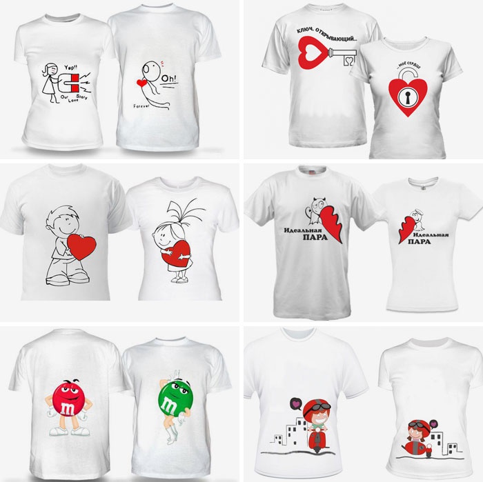 Only for two are intended twin items: T-shirts or T-shirts with romantic inscriptions and pictures, as well as with specially printed him and her photos. If a girl is engaged in needlework, it is not difficult for her to make a pleasant friend. Knitted scarf will decorate and warm your loved one in frosty days. You can sew yourself pillowby decorating it with thematic embroidery or appliqué.