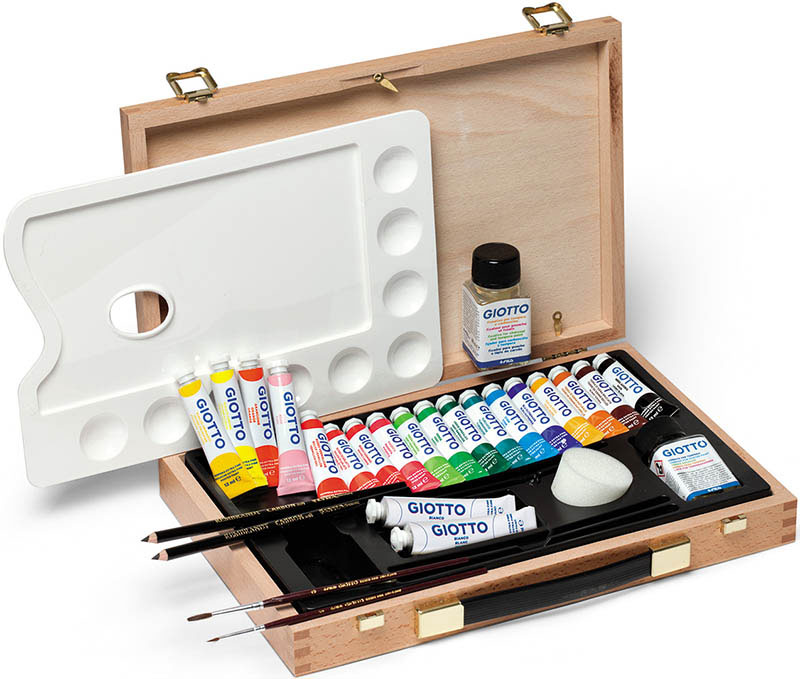 - Professional artist set. It contains pencils and paints.