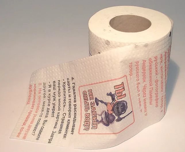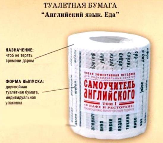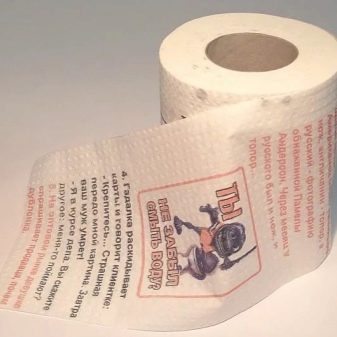 - Toilet paper "Reading at your leisure". Each roll of such toilet paper has its own text: newspaper clippings, different stories. With this paper, it is easier to pass the time, so the gift is very useful.