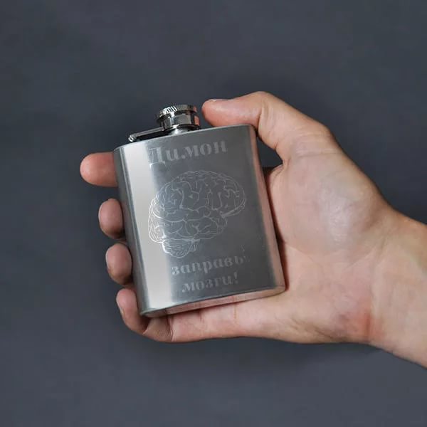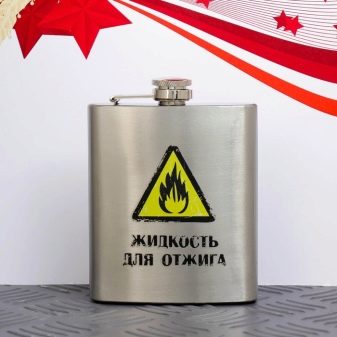 - Flask with an inscription. In the assortment of containers for beverages you can find such models on which the comic text is written. For example, there are flasks with the words “Annealing Fluid”, “Danger of Degree”. Find a similar gift in any gift shop, so that the purchase is not difficult.