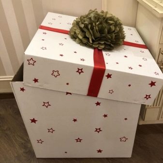 - A small gift - in large packaging. There are a lot of videos on the Internet, where the birthday man starts unpacking a huge gift. At the end of the video from the numerous packages, the person finally pulls out a small box in which the present itself is located. This way of playing a person applies to both female and male gifts. Even more: this drawing is suitable for any serious gift - a smartphone, car keys, watches and much more can be packed in several layers of wrapping paper.