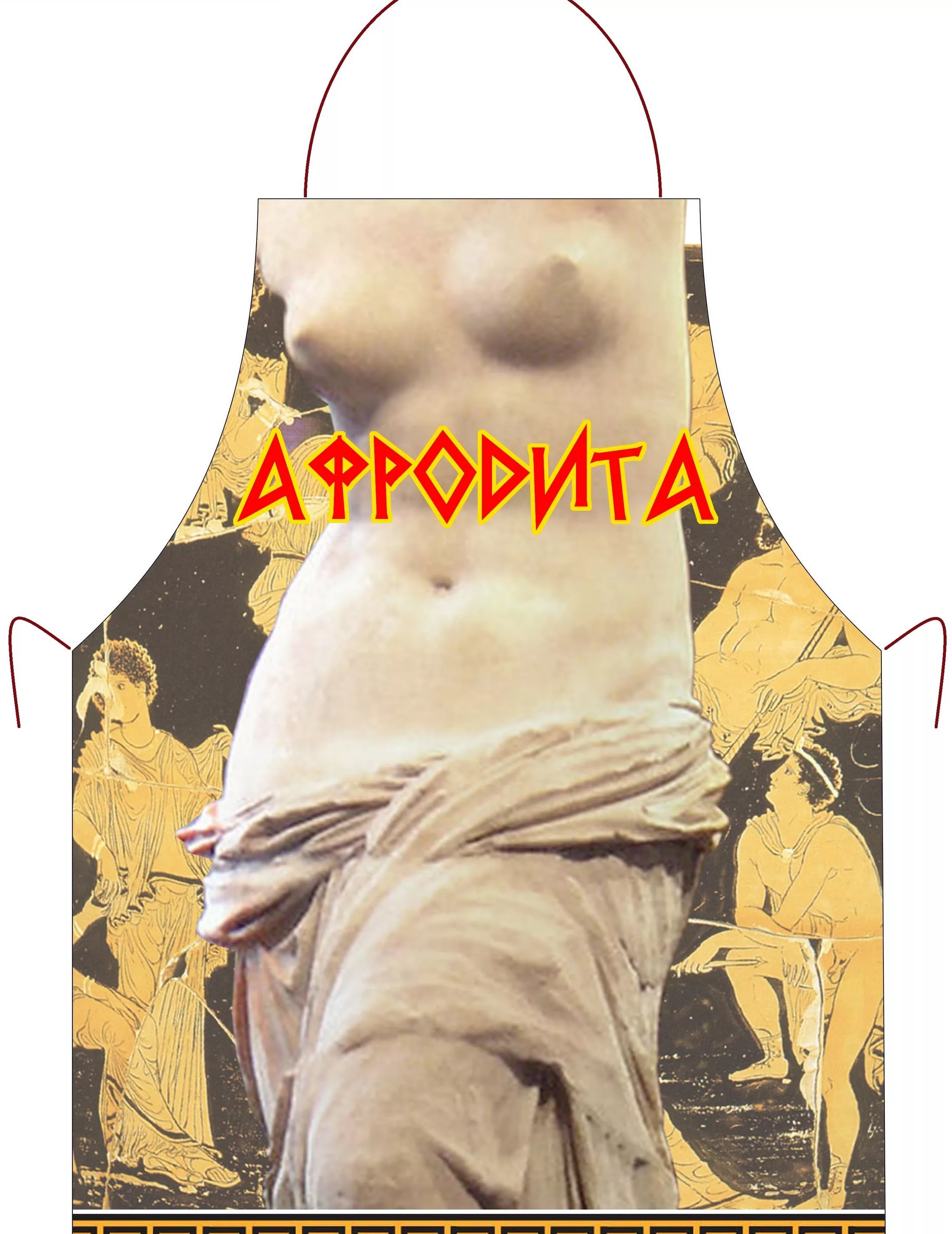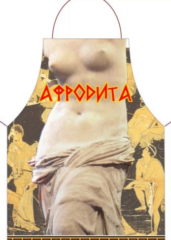 - Apron "Aphrodite". A kitchen apron is a useful accessory if the birthday girl loves to cook. The highlight of the gift will be the design of an apron: you can pick up the image of a half-naked woman, a man or an animal (to choose everything in the framework of a decent one). The gift will be appreciated by women who like to poke fun at each other.