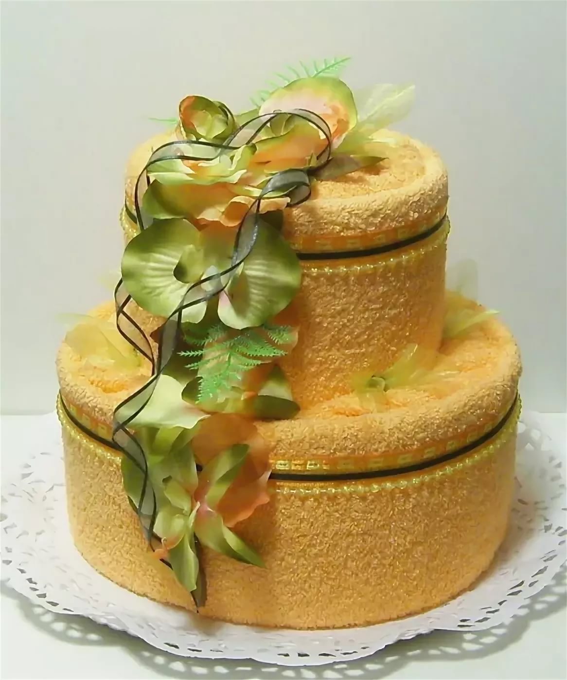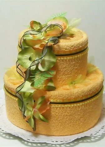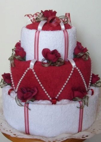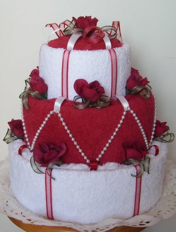 - Towel. Besides the fact that you can put a comic text on a towel, there is a festive version of the packaging of such a gift. In the store you can find towels that are laid in the form of cakes, pastries and various household appliances. Often the birthday women confuse such gifts with real household items, so good mood is provided to all guests during the holiday.