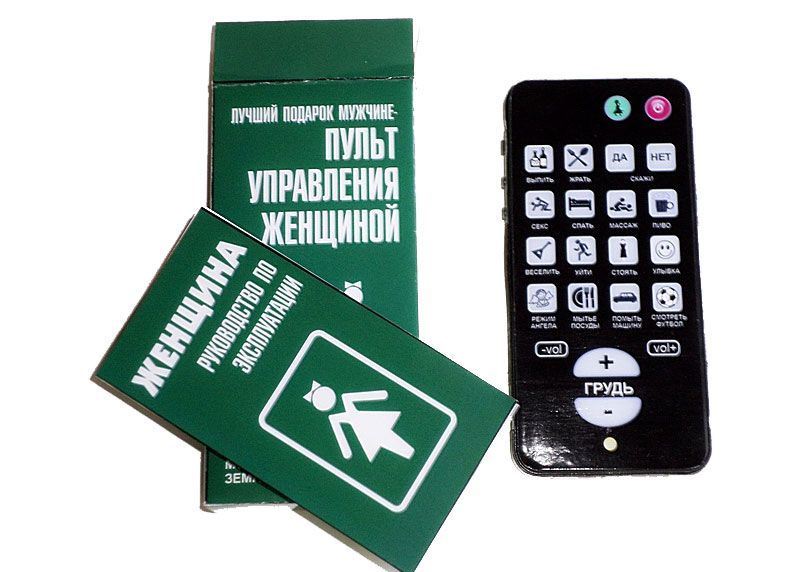 - Remote "universal". To surprise a man, as a gift you can buy a remote, which will have comic buttons: “remove the sound of a wife”, “create a can of beer”, “make tomorrow the day off”. Of course, such a remote control would be a model, otherwise the world would be perfect. There are many variants of remotes with humorous functions, so it’s easy to choose an individual “set of desires”.