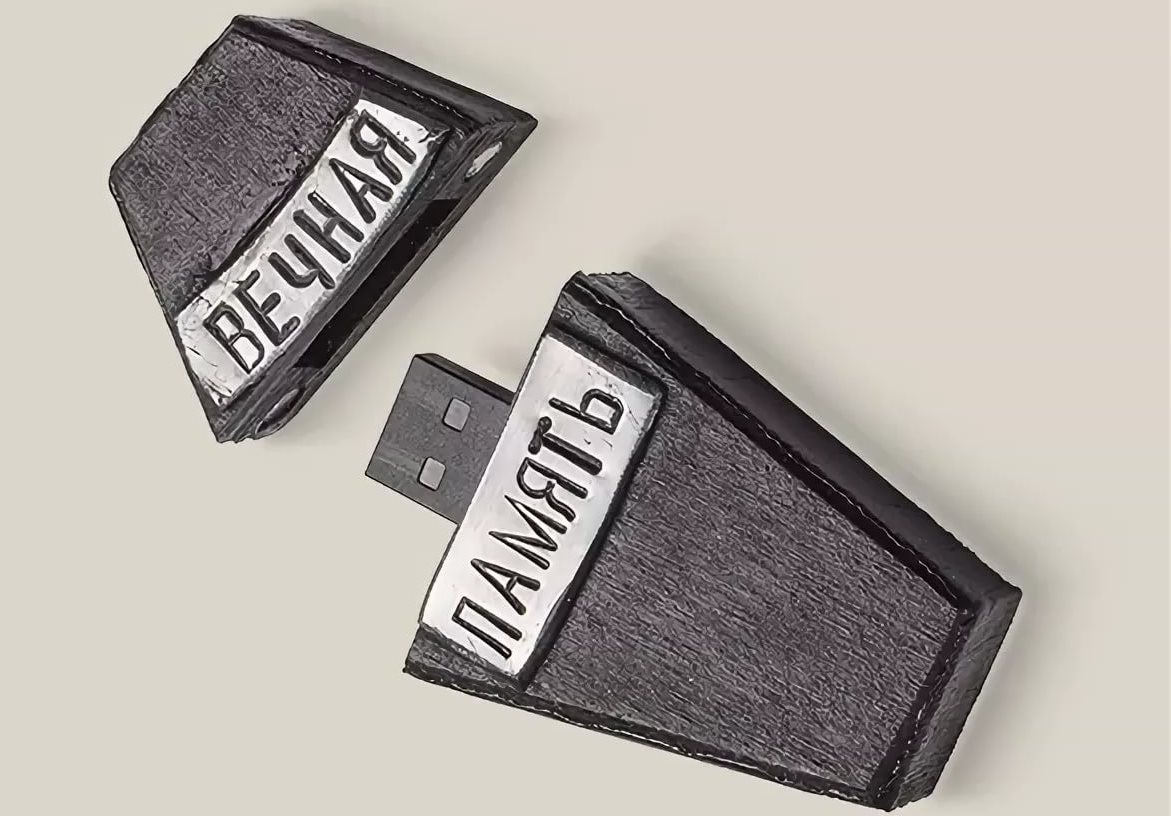 - Flash Drive "Eternal Memory". The miniature tombstone, on which the inscription “Eternal memory” flaunts, makes an indelible impression. This flash drive should be given only to those men who prefer black humor. This flash card design is the most challenging and original solution on the part of designers.