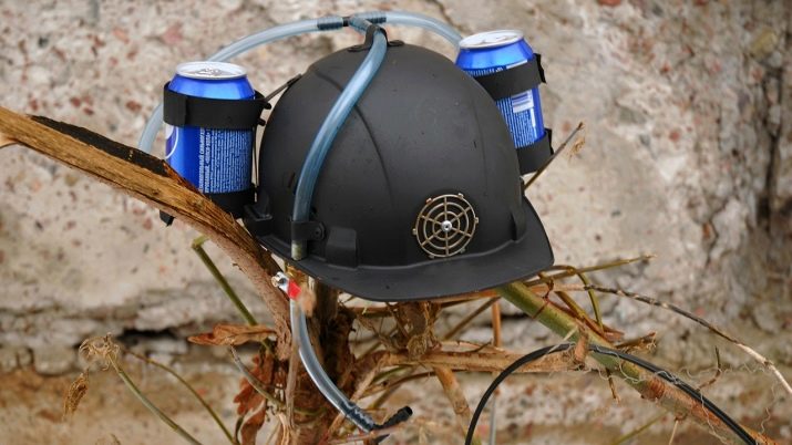 - Beer helmet The design of such helmets is a helmet, from which there are two long tubes. On the sides of the helmet are mounting, in which you need to put a jar of drink (volume of 0.33 liters). This helmet will be accepted by a man positively, and even if he is not keen on alcohol, the device will still be used for lemonades or juices.
