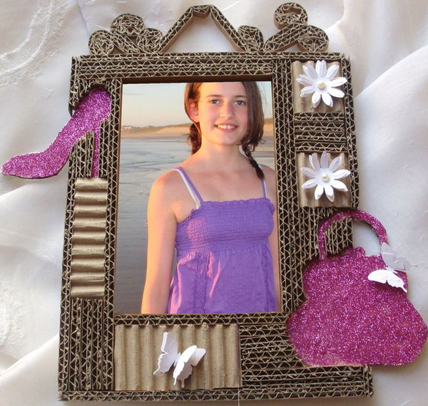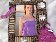 The presence of postcards and caskets is already a great option for presenting to a friend, but you can please her with another hand-made product when using paper. The final chord can be homemade photo frame with a picture inside. To create also need to be cardboard and decorative items. Using two identical rectangles creates the basis of the product. In one of them, a window is cut through, from which a photo will be seen.