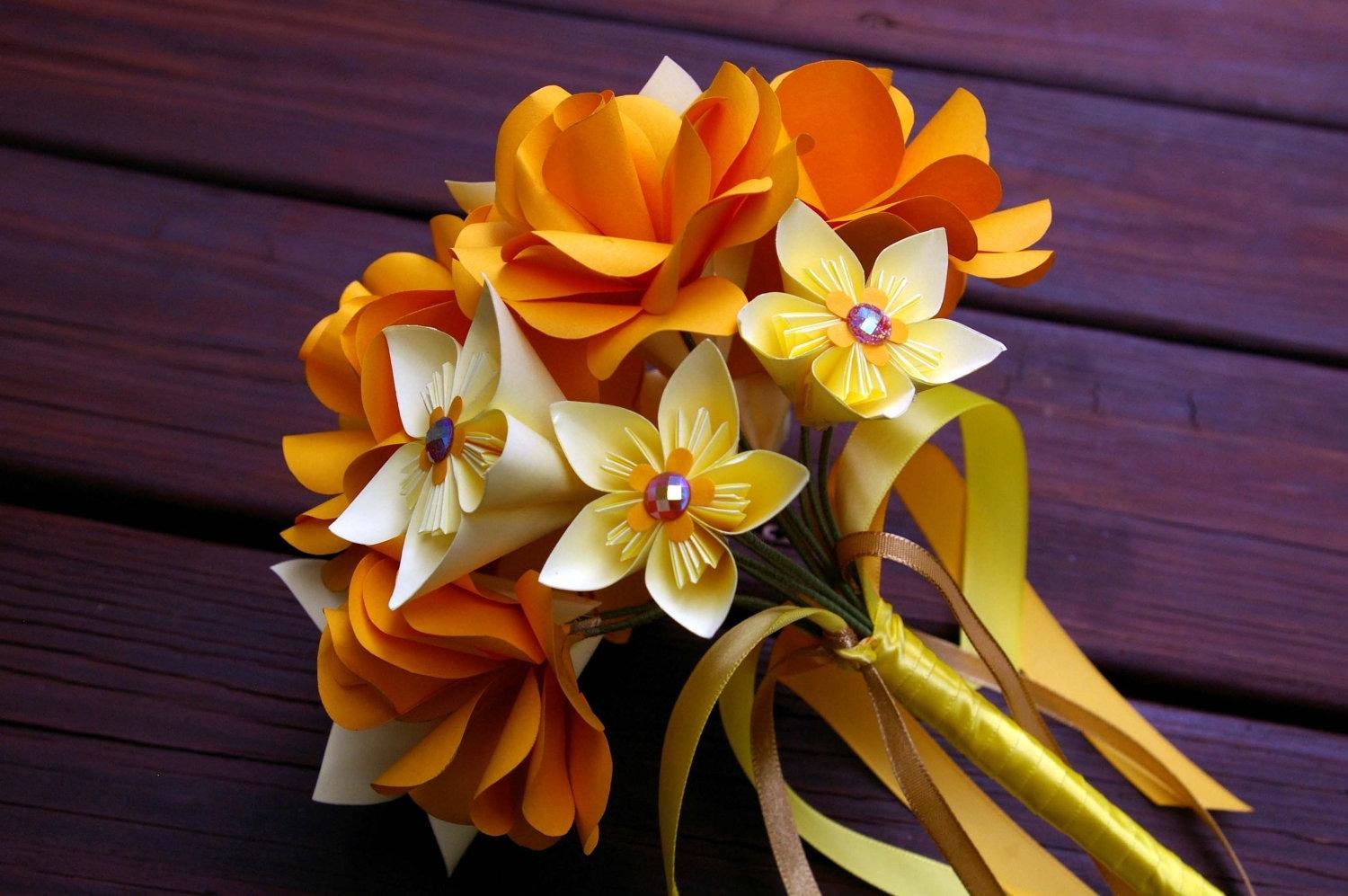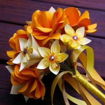 If you want to surprise your beloved friend and present something that she does not expect, you should spend some time thinking. Many girls love when they are given flowers, but there are those who care about plant protection and ask not to give them cut bouquets. This dilemma can be solved quite simply, creating a bouquet of artificial flowers. The simplest materials can be corrugated paper and glue, and for more experienced craftsmen, a fabric will work, the best is an atlas. The product can be in the form of a standard bouquet or be decorated with an original pendant or a statuette.
