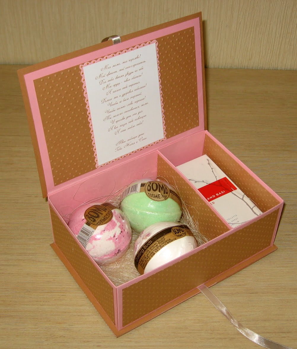 Another original option for congratulating your girlfriend will be the creation of a box. It can be both wooden and cardboard. The first option is more difficult to make, and not always the material is available, whereas a paper product will be affordable and fairly simple to create. First of all, it is important to find the most dense cardboard and beautiful paper with which the finished product will be decorated. The casket can be designed for jewelry, or you can put sweets in it, which will also be very nice.