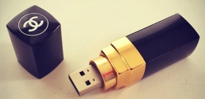 If you want to make an original, but useful gift, you can build non-standard USB flash drive using for this lipstick and the device itself. Lipstick should be completely removed from the body, and inside, instead of it, is placed a flash drive. Such an unexpected gift will surprise your girlfriend, but you’ll definitely like it.