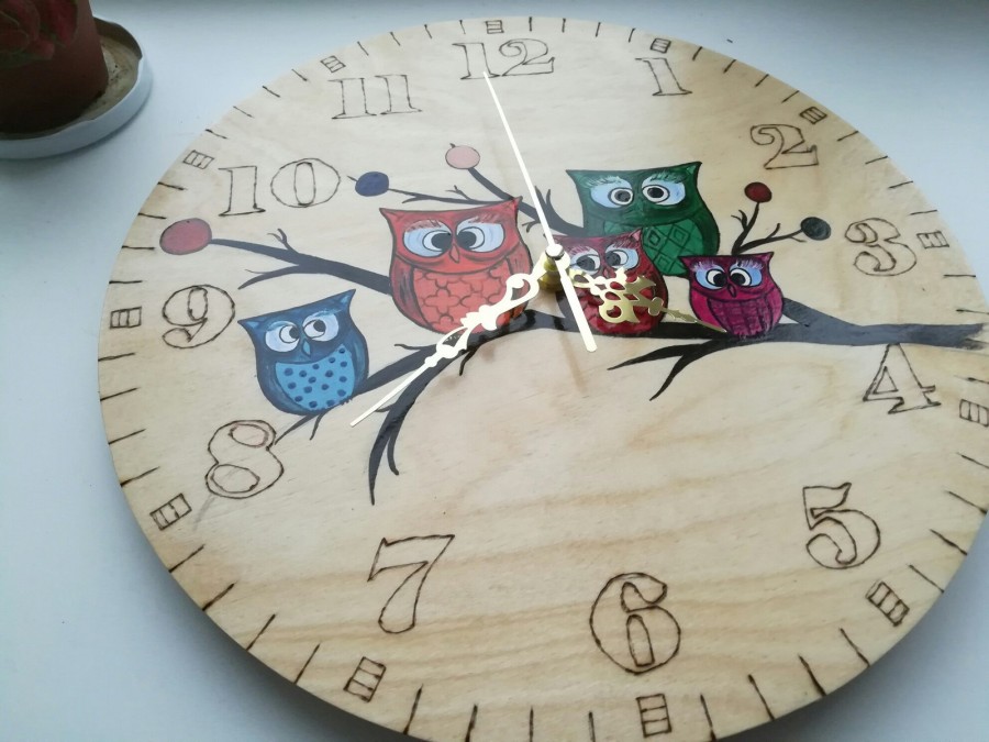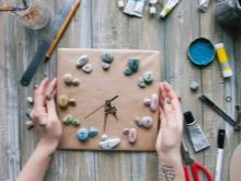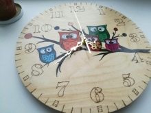A homemade wall clock is another good gift option. They can be made from a special blank, which are sold in the store, and you can come up with something of your own.Plywood, for example, cut the workpiece of any shape, drill a hole for the mechanism and arrows, decorate, paint - and a useful gift is ready. You can take vinyl records, wooden slats, an old bicycle wheel, a hoop, a cut of a tree trunk, and so on.