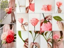 The next original gift is composition of homemade flowers. They can be made of corrugated paper, cloth, foamiran, leather, suede. They look no worse than living and will never wilt. The composition for many years will serve as a reminder of a beautiful celebration.