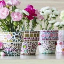 They can be painted with stained glass paints, decorated in vintage style, glued into a glass mosaic, made an appliqué, wrapped in beads, and put pebbles, glass beads, beads, and rhinestones inside.