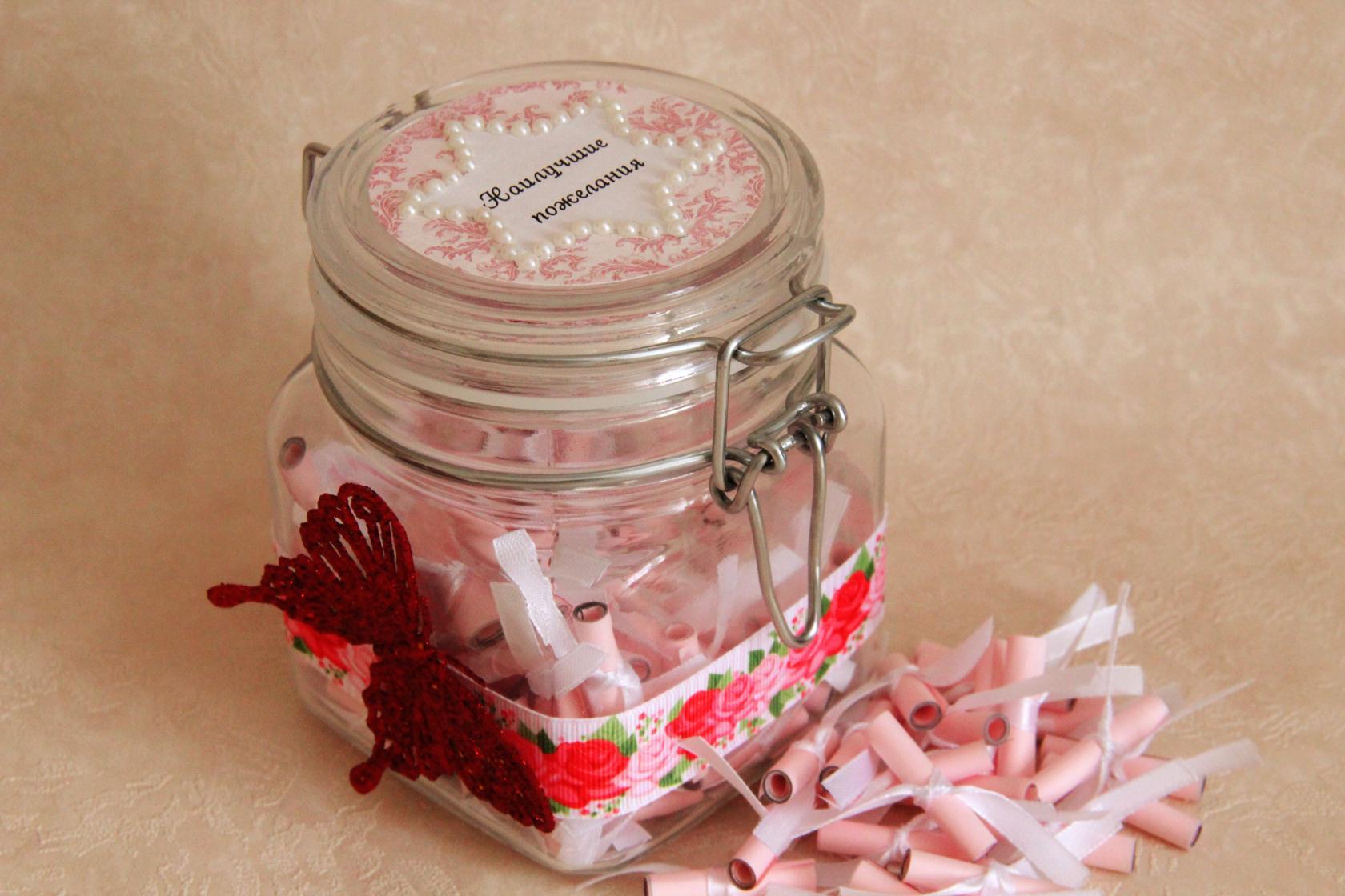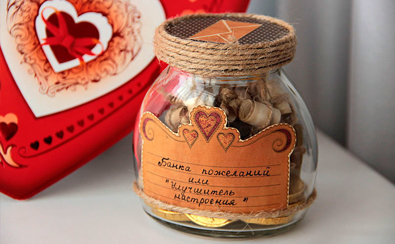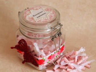A cool gift or addition to it are wish jars. It will be necessary to cut strips of beautiful paper on which to write your wishes to the birthday man, roll them up and tie them up with string or beautiful ribbon. Their number depends on the volume of banks and fantasy.