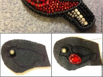 First you need to draw on a dense cardboard sketch of what you want to create. Cut the picture - this will be the basis. Then string the beads into pieces of wire. Form the necessary bends and link the parts together to form the desired image. For the wrong side to use the skin. Cut another piece of cardboard, but two to three millimeters smaller than a skin pattern. Outline the places where there will be cuts for the spring and the eyelet clasp, cut them with scissors.