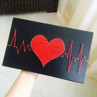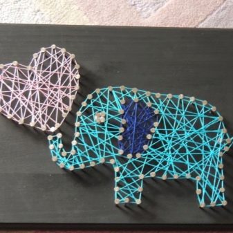 Wonderful panels are made of nails and thread. Draw the outline of what will be depicted, and hammer in the carnations at the same distance along the contour. Then, hooking a thread on one of them, you need to make a knot and wind the drawing or its part in a chaotic manner. Use both threads of one color, and a miscellaneous if the picture it provides. Moreover, such a panel can depict both children's and fully adult themes.