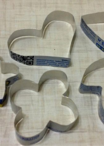 Use metal scissors to cut the tin into strips and give any desired shape by fastening the ends with a construction stapler.