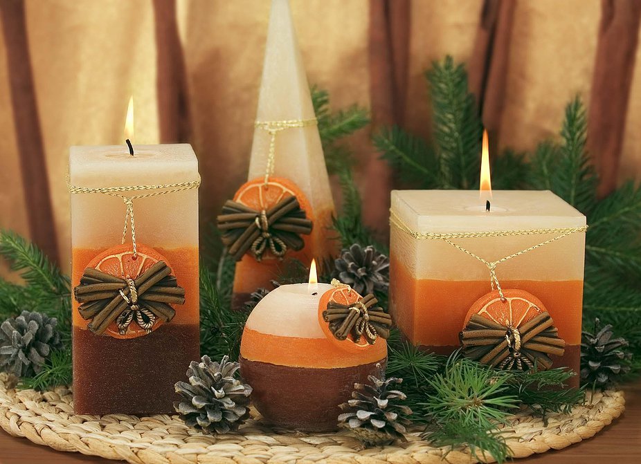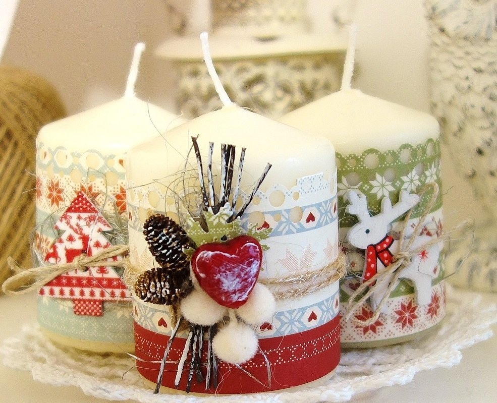 Candles themselves can be decorated with string, special stickers, decoupage, ribbons, braid.