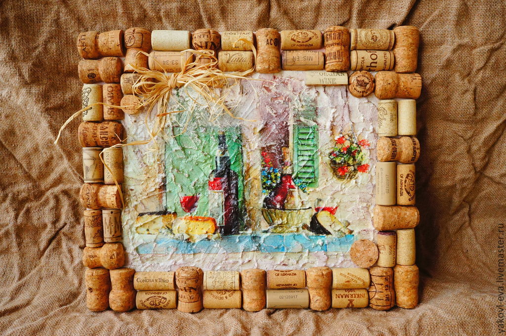 Buy a mug with an original print. It can be filled with something sweet and beautifully packaged. Keychain or handbag, will make a pleasant impression. If there are a lot of corks from the wine, then you can quickly and easily create a panel of them. Take any frame, cut circles out of cork, decorate it at your discretion and stick it on the base, making up the figure. Simple, fast, cheap and beautiful.