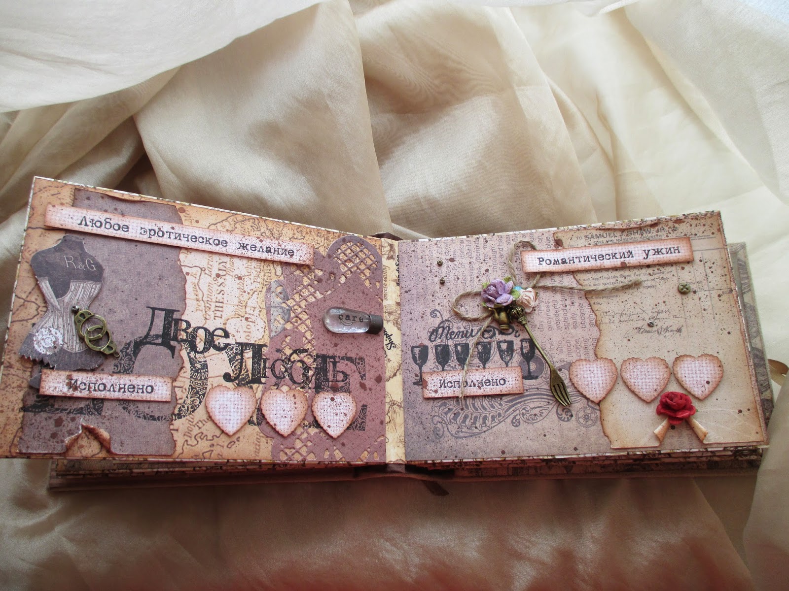 In the scrapbooking technique, you can make photo albums, photo frames, recipe books, postcards, business card holders, passport covers, diaries, notepads, flip-flops and simple calendars. A checkbook of desires will delight the birthday party, in which each check is the desire that the donor will fulfill for him. The owner of the checkbook at any time has the right to present any check and his desire should be fulfilled as quickly as possible and implicitly.