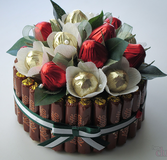 The first teacher can present sweets - a box of chocolates, a cake. If you want originality, you can make a cake out of sweets or a name cake.