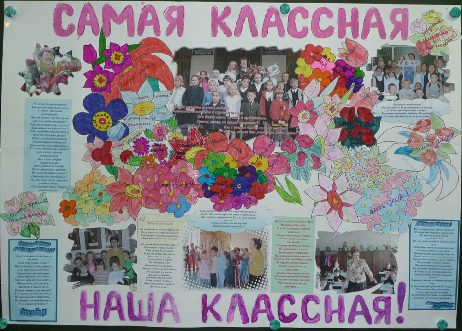 As younger students (under the guidance of an adult), and more adult children can make a congratulatory panel. To do this, you only need drawing paper, paint and markers. You can decorate the collective "postcard" photos. Congratulations written by children will be surely read by the teacher and will be a pleasant gift. Congratulatory poem or song performed by the whole class is an unusual surprise that will cause a lot of positive emotions - from a smile to tears of gratitude and joy.