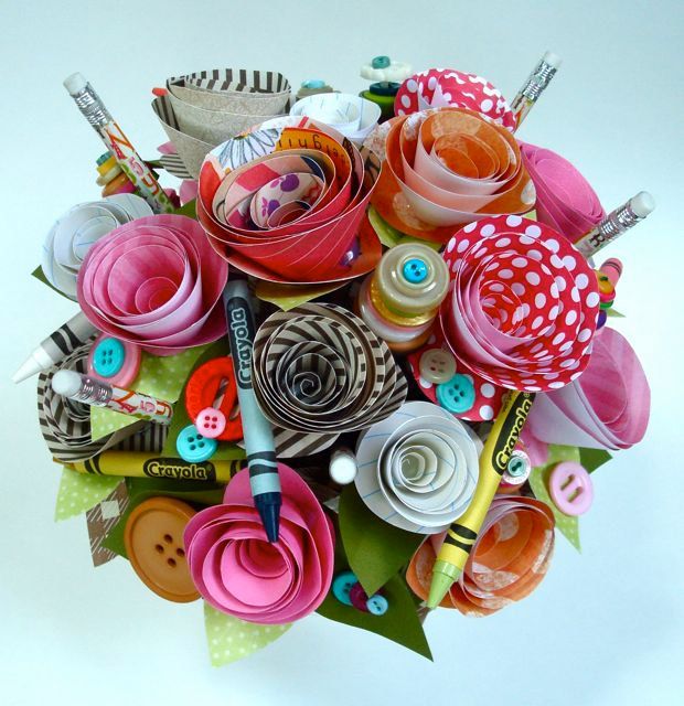 For example, stationery can be "turned" into a bouquet. And on the USB flash drive to record video greetings from students and parents.