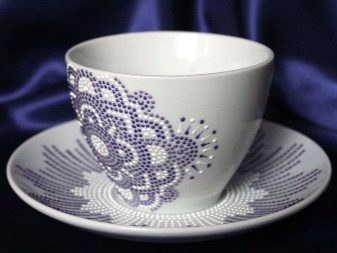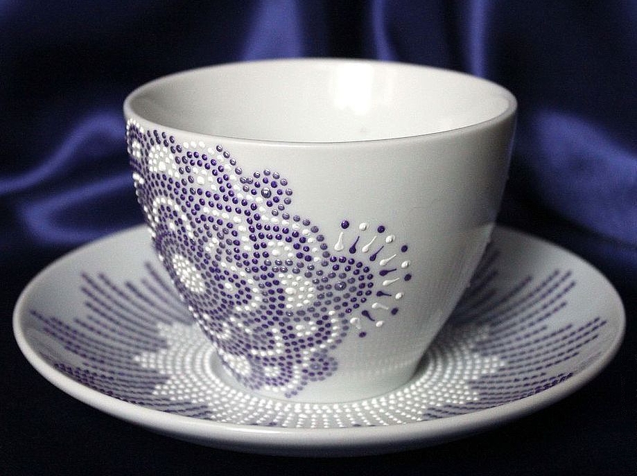A nice and inexpensive gift is a hand painted mug with a plate. All you need is to purchase a set of dishes and paint for painting on glass, as well as contours and stencils.