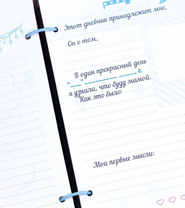 Universal gift that will be very useful during the first pregnancy. A small notebook where you can record your feelings on certain dates, paste in photos and prints with ultrasound. Many of these diaries have useful tips for each week of pregnancy and a small information block. The notebook will become a real treasure, because in a couple of years a lot will already be forgotten, and inside there will be mom's notes that will remind you of such a magical period.