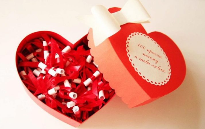 A romantic gift will be very nice to receive from a loved one. Take a box, better in the shape of a heart, and fill it with sweets and notes, each of which must contain the reason you love your woman.
