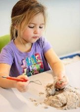 - Kinetic sand has become a very popular gift lately. It is unusual in composition and very pleasant to the touch. It looks like quite ordinary sand, but in the composition of the sand grains there is a viscous mass, which makes it possible to make different figures. The manufacturer usually attaches to a set of molds and pamphlets to see examples of what can be built from such sand. Even parents are not opposed to get carried away with this activity and immerse themselves in entertaining work with their children.