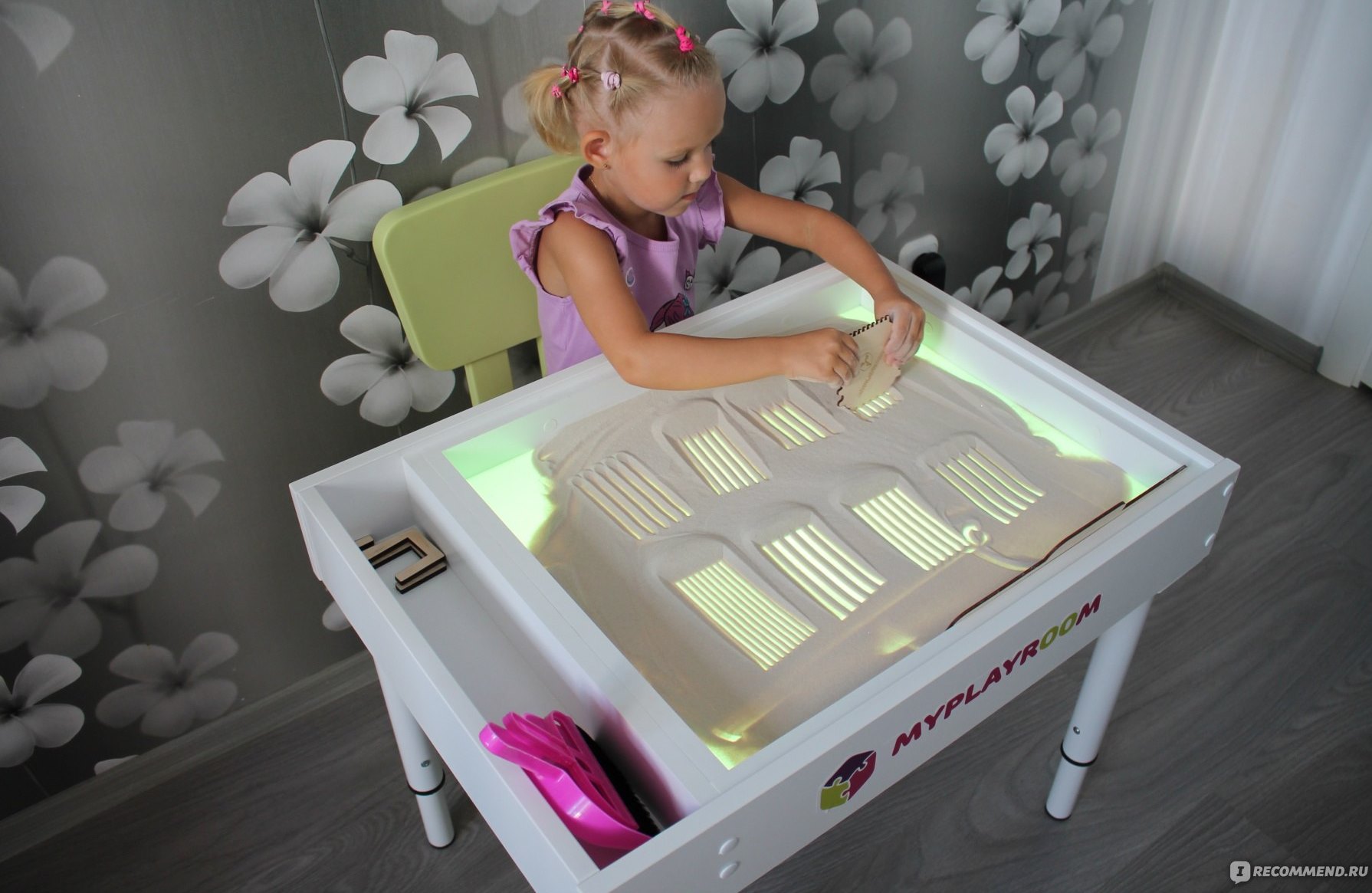 - Sand painting table. Creating sand masterpieces develops imagination, thinking, fine motor skills, and also helps to relieve fatigue and emotional stress.