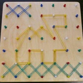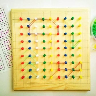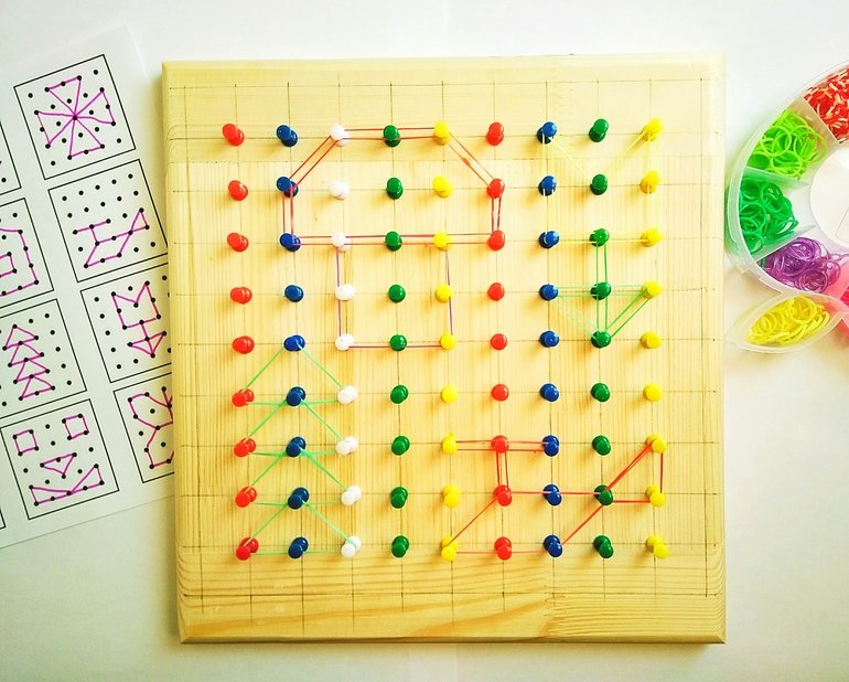 For preschool girls who are actively developing motor skills, an actual homemade gift can be geobord. For its manufacture will require a minimum of materials. As a basis, you can use the board, thick cardboard and even foam, as the clips for the gum will perform the usual buttons with colored hats. Such a device will be relevant not only for preschoolers, but also for schoolgirls, because with the help of a geobord you can study the area and perimeter, practice creating letters, and so on.