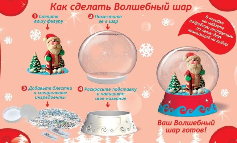 Another option for creativity, but in this case the girl will succeed withUse your hands to make yourself a beautiful New Year's gift. As a rule, the set contains materials for modeling, tinsel and various decorations for decoration, as well as the transparent dome itself, in which you can place characters created by the child’s hands.