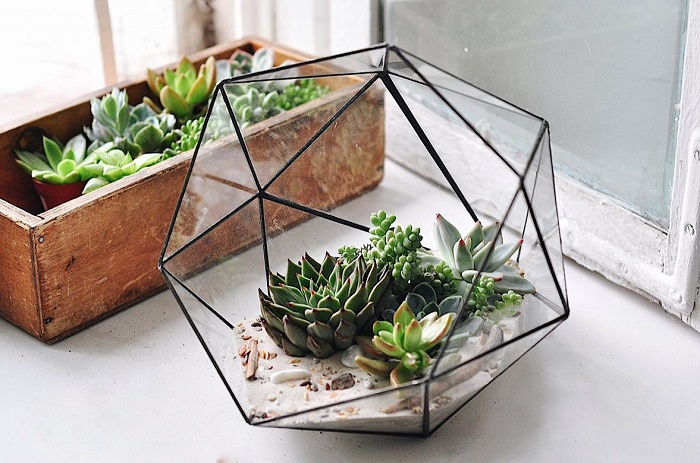 - Florarium - this is an unusual aquarium with plants, a special microclimate has been created inside. Such a gift will be an excellent interior decoration, the girl will be pleased to care for the plants.