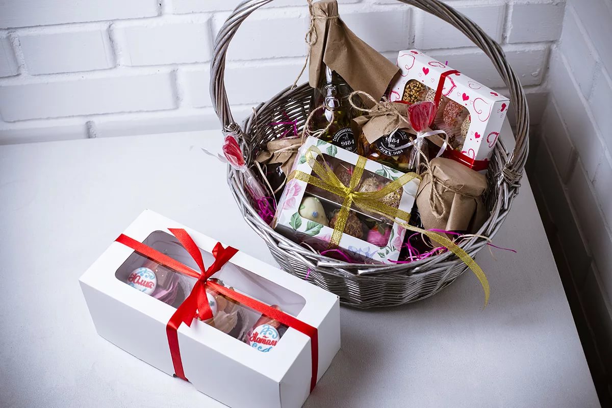 - gift basket filled with candy, tea and other gifts;
