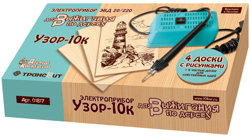 - Kits for burning wood. Contribute to the disclosure of creativity, imagination and artistic skills. In addition, they develop perseverance and teach them hard work.