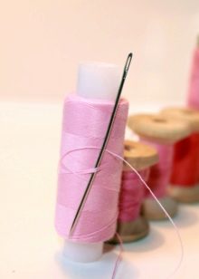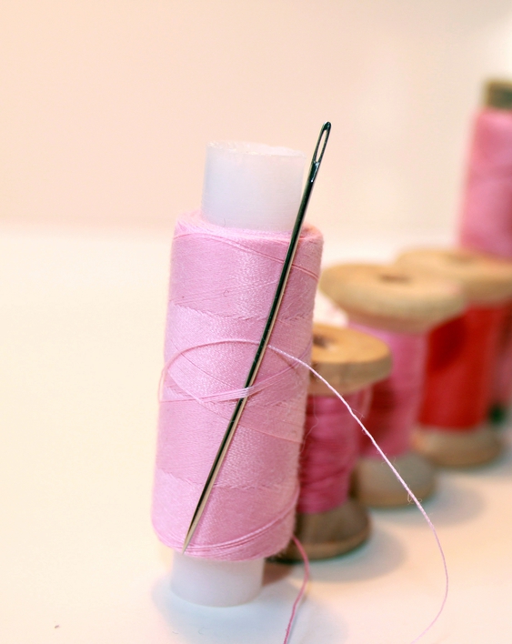 - thread with a needle or glue;